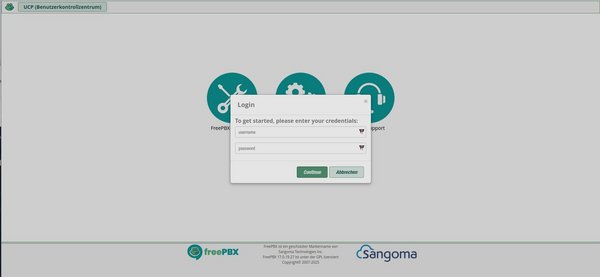 You will then be taken to the FreePBX login page, where you click on “FreePBX Administration” and can then log in with the admin user you just created.